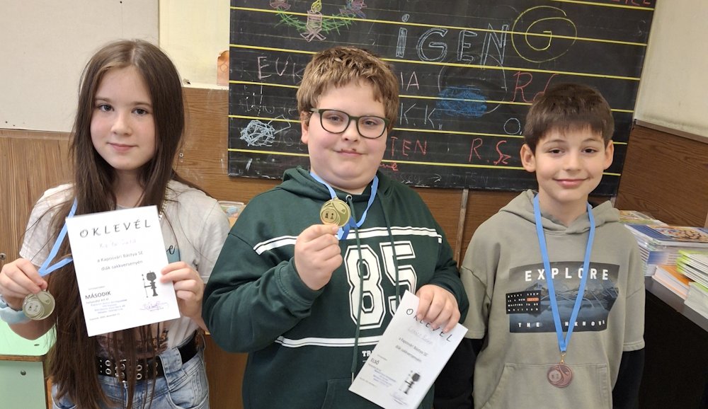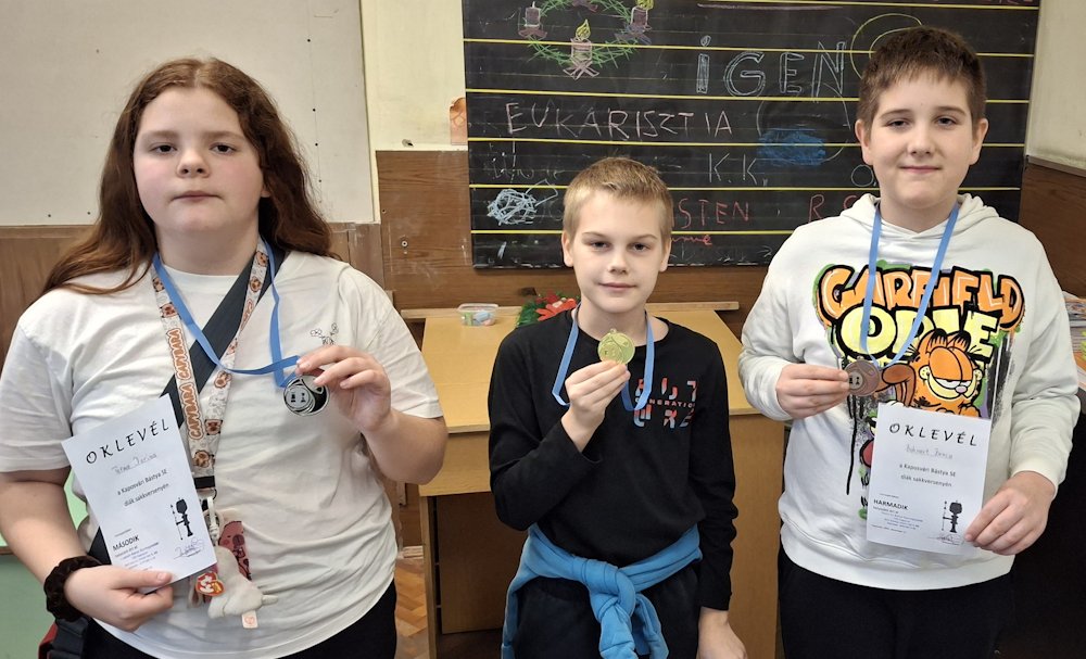 Csütörtökön Kaposváron rendezték a Kaposvár és Kaposvár Városkörnyéki Sakkversenyt, melyre szép számmal jelentkeztek általános iskolai tanulók a városból, illetve Kaposmérőből, Kaposfőről. Iskolánk diákjai közül első helyezést ért el Kiss Vitéz Hunor és Lukács Zalán, ezüst érmet kapott Borbély Benjamin, Kis-Pál Sára és Torma Dorina, illetve harmadik helyen zárt Bohnert Cintia, Bohnert Bence, Bereczk Kende, Gál Milán, Miovecz Marcell és Turi Maxim. Szép helyezést ért el Kővári Noel, Horváth Noel, Varga Ákos, Tüttő Benett, Benkó Nóra, Ignácz Milán, Bereczk Nimród, Benkovics Doroti, Jeremy és Fabian Burghardt is első sakkversenyükön. Németh Botond is csak egy ponttal maradt el a dobogótól, mindenkinek további sikeres versenyzést kívánunk!