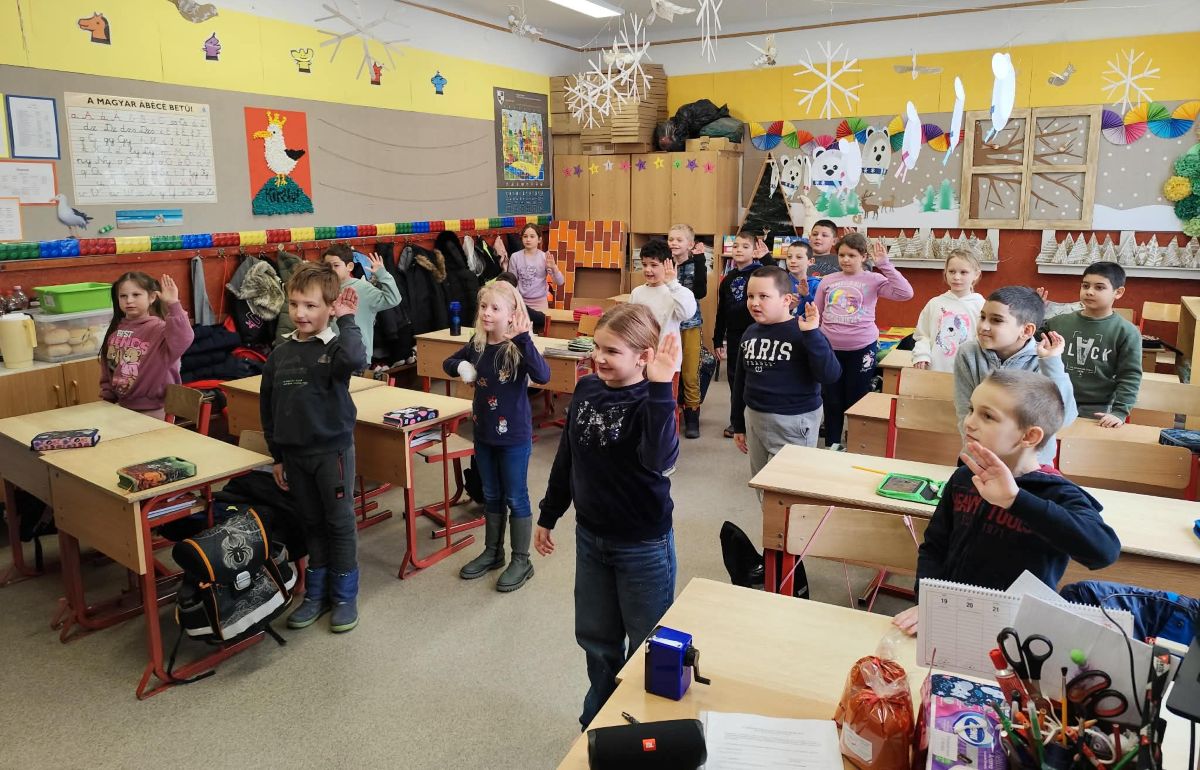 Mátraházi Tibor iskolapszichológus érzékenyítő foglalkozást tartott a 2/A osztály tanulóinak az iskolai bántalmazás témakörében. A program során a gyerekek játékos, életkorukhoz igazított módon beszélgettek arról, mi számít bántalmazásnak, és mit tehetnek, ha ilyen helyzettel találkoznak. A foglalkozás hangsúlyt fektetett az empátia erősítésére, az egymásra való odafigyelésre és arra, hogy segítséget kérni természetes és fontos. A tanulók érdeklődően, aktívan vettek részt a közös munkában.